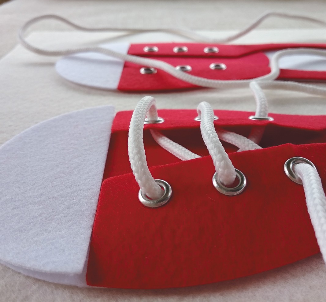 Las piezas de las zapatillas llevan los ojetes puestos. Incluimos las cordoneras