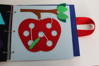 El libro incluye la portda, actividad de la torre, coser la manzana, el potato y el bote de colores. Este libro está indicado para los mas pequeñines de la casa