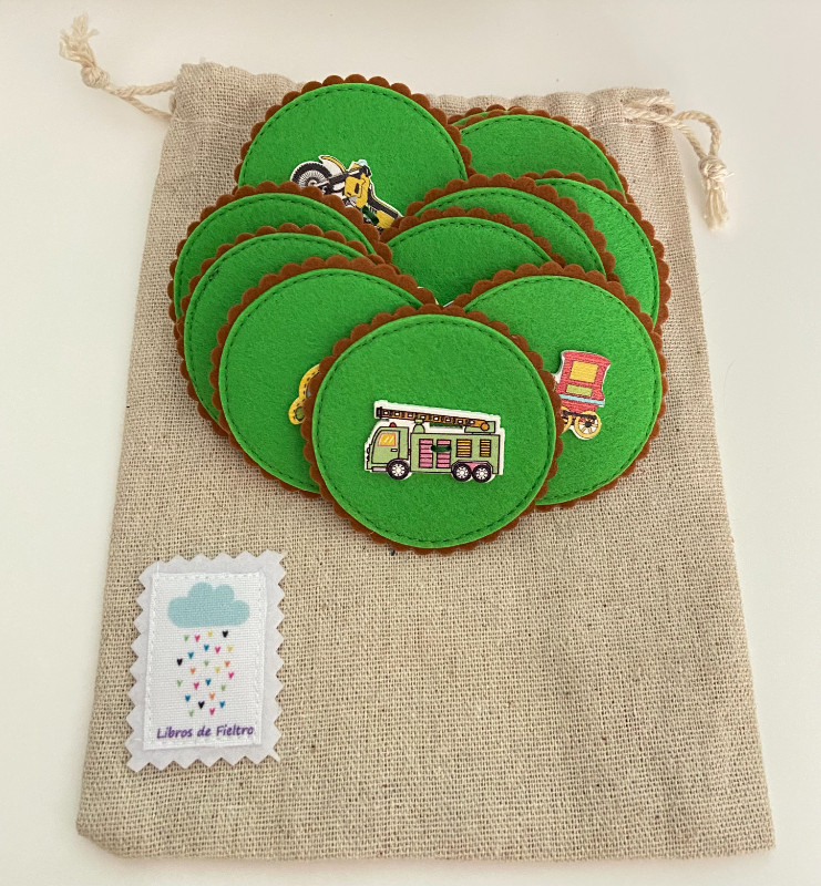 os juegos de memoria son denominados como juegos de concentración, los cuales permiten mejorar las habilidades cognitivas de los niñ@s a traves del enfoque. Estos ayudan a mejorar la atención, concentración, memoria visual y pensamiento rápido. Además van a adquirir un vocabulario específico de las figuras que aparecen en el juego. Esta es nuestra versión de juego de memoria para llevar en el bolso de forma cómoda , fácil y sencilla para que el niñ@ pueda jugar en cualquier lugar . También es posible, por sus dimensiones, que el niñ@ lo pueda llevar colgado de la espalda como si fuera una mochila. Siempre recomendamos dejar al niñ@ ser el protagonista de su propio aprendizaje y que el adulto le acompañe como guía.