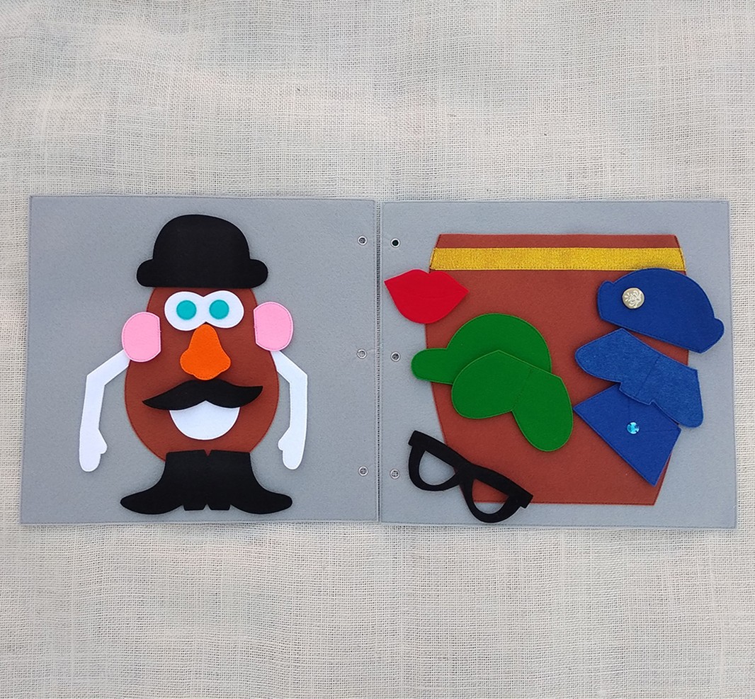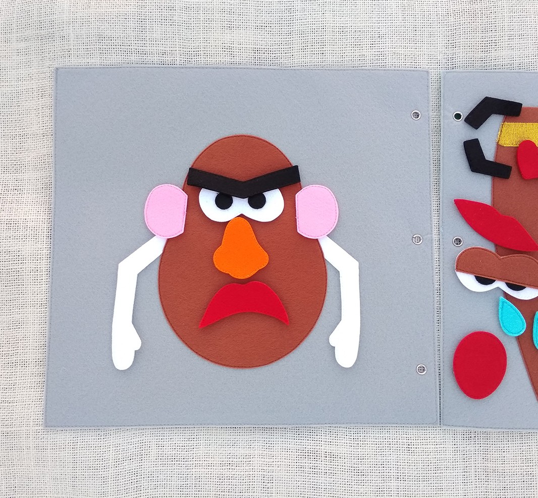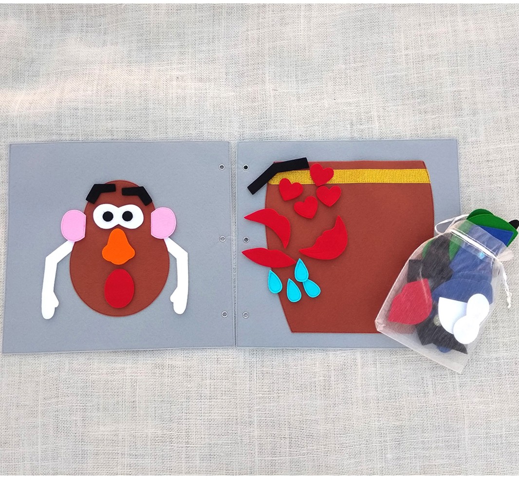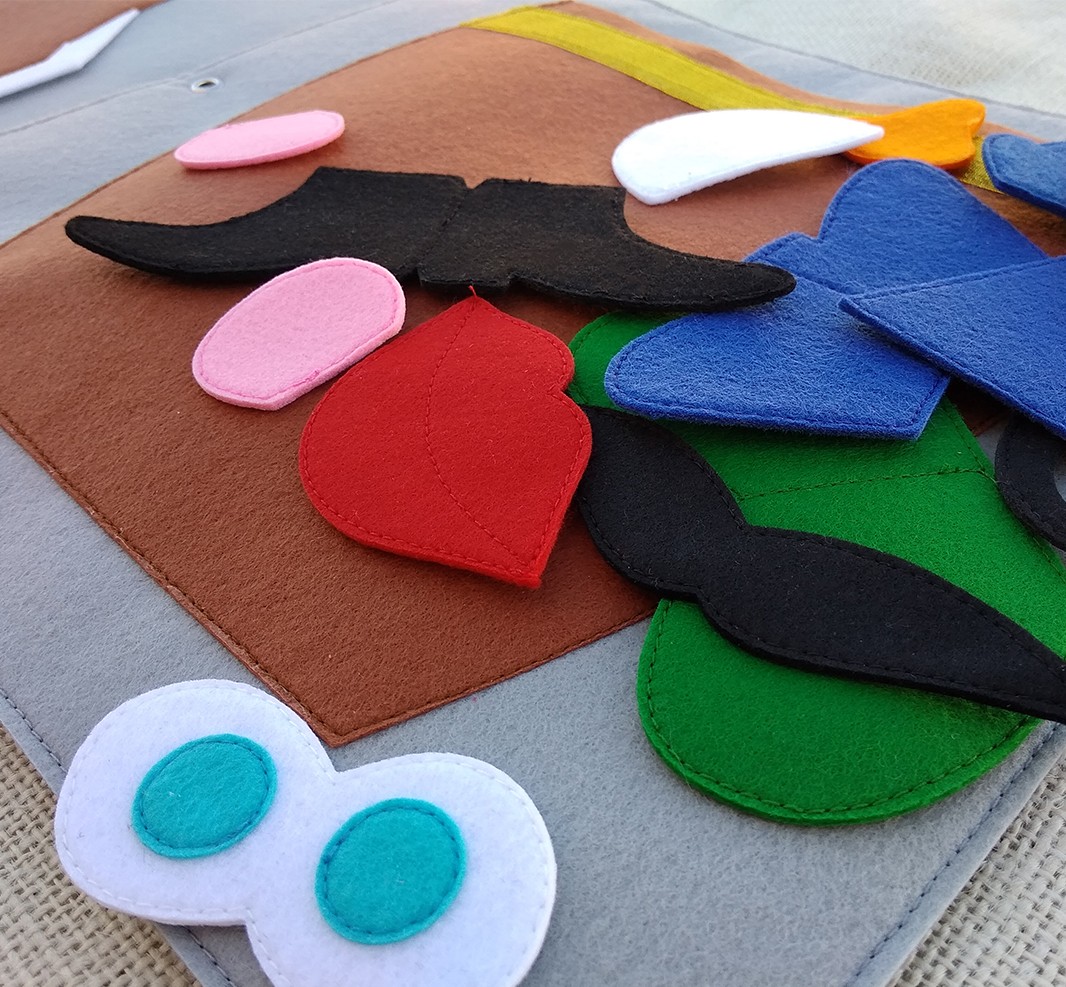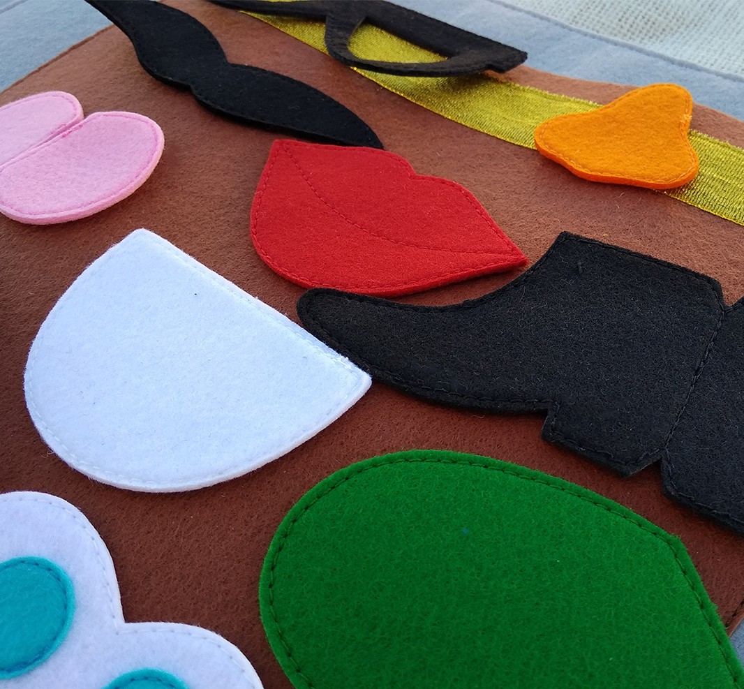 Con esta actividad el niñ@ va a prender a identificar algunas partes del cuerpo, sobre todo las partes de la cara y utilizarlo en sus juegos de rol.Además va a despertar en ell@s la curiosidad y la imaginación para crear divertidos personajes con los diferentes complementos que lleva. Incluimos una bolsita de tela con diferentes complementos haciendo referencia a las emociones básicas: alegría, tristeza, miedo, sorpresa y enfado. Con estas representaciones el niñ@ puede empezar a identificar y poner nombre a lo que siente. Más adelante, conforme el niñ@ vaya adquiriendo mayor vocabulario emocional, aprenderá a gestionar y expresar lo que siente a través de este juego. Siempre recomendamos dejar al niñ@ ser el protagonista de su propio aprendizaje y que el adulto le acompañe como guía.